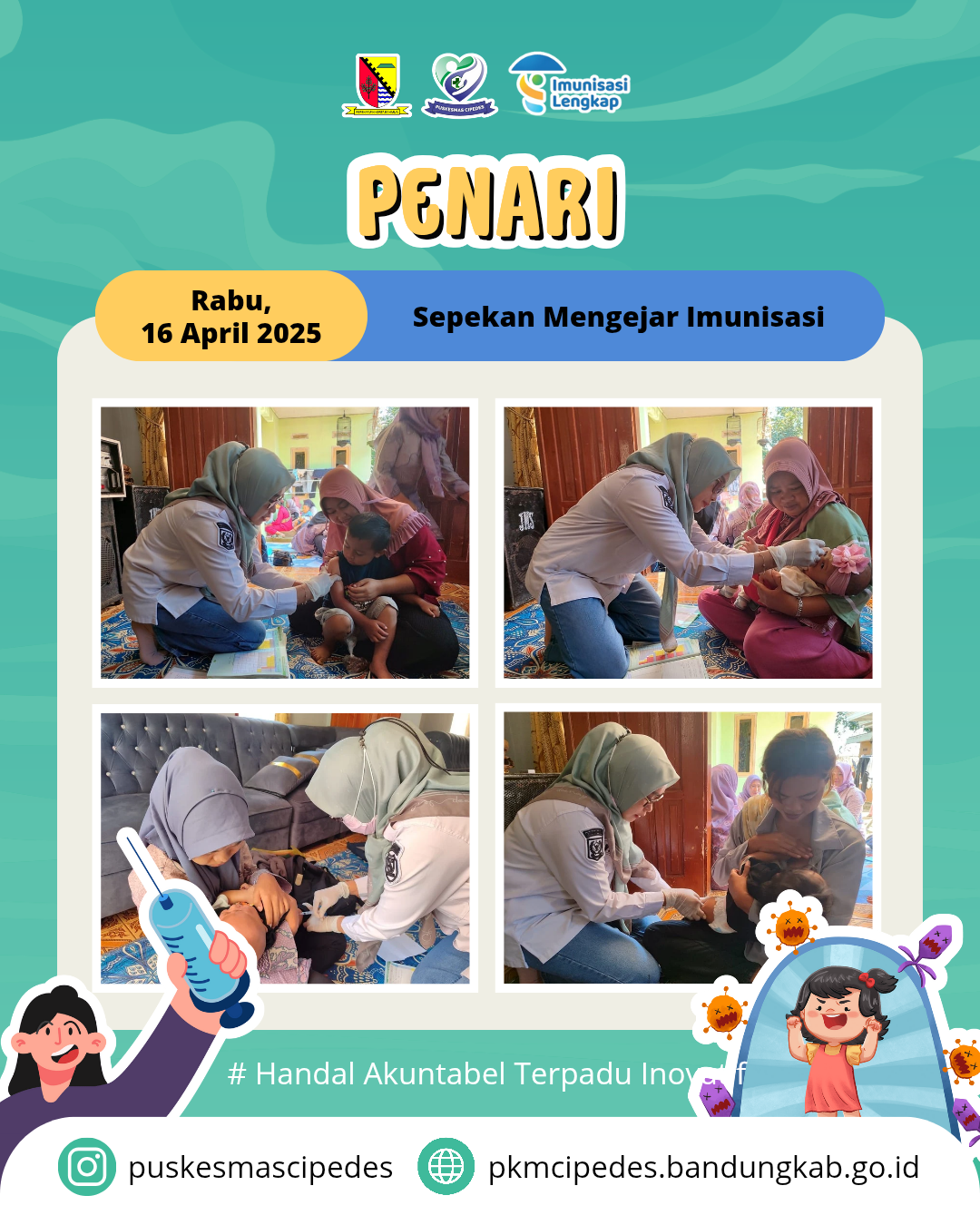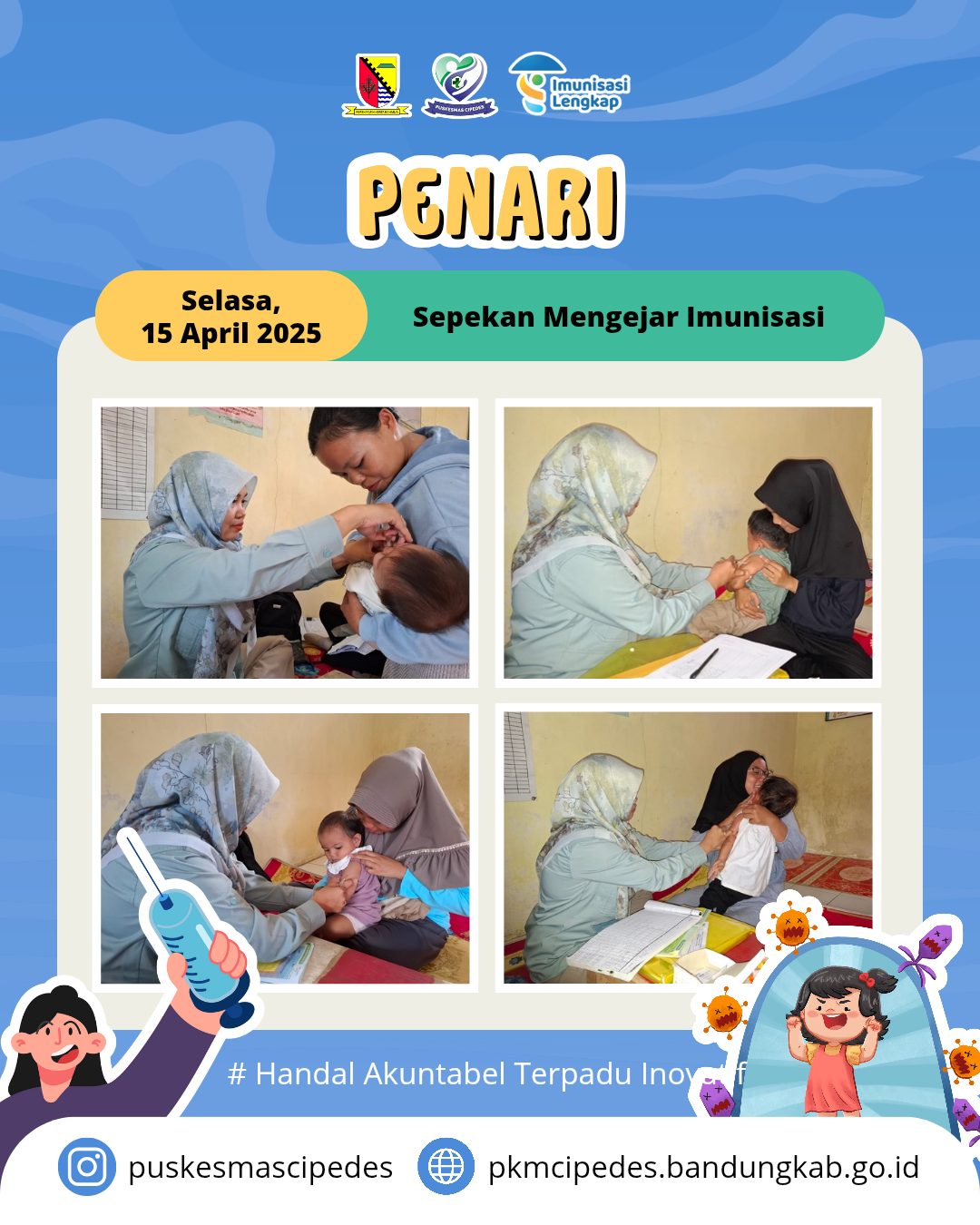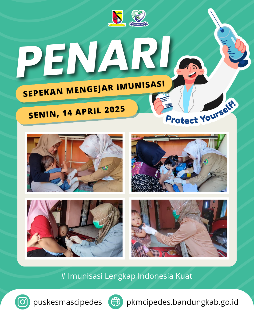 Dalam upaya meningkatkan cakupan imunisasi pada anak-anak dan mencegah penyakit menular yang dapat dicegah dengan vaksin. Puskesmas Cipedes melakukan kegiatan PENARI (Sepekan Mengejar Imunisasi) yang dilaksanakan pada tanggal 14-19 April 2025. Dengan adanya program ini diharapkan dapat meningkatkan kesadaran masyarakat akan pentingnya imunisasi.