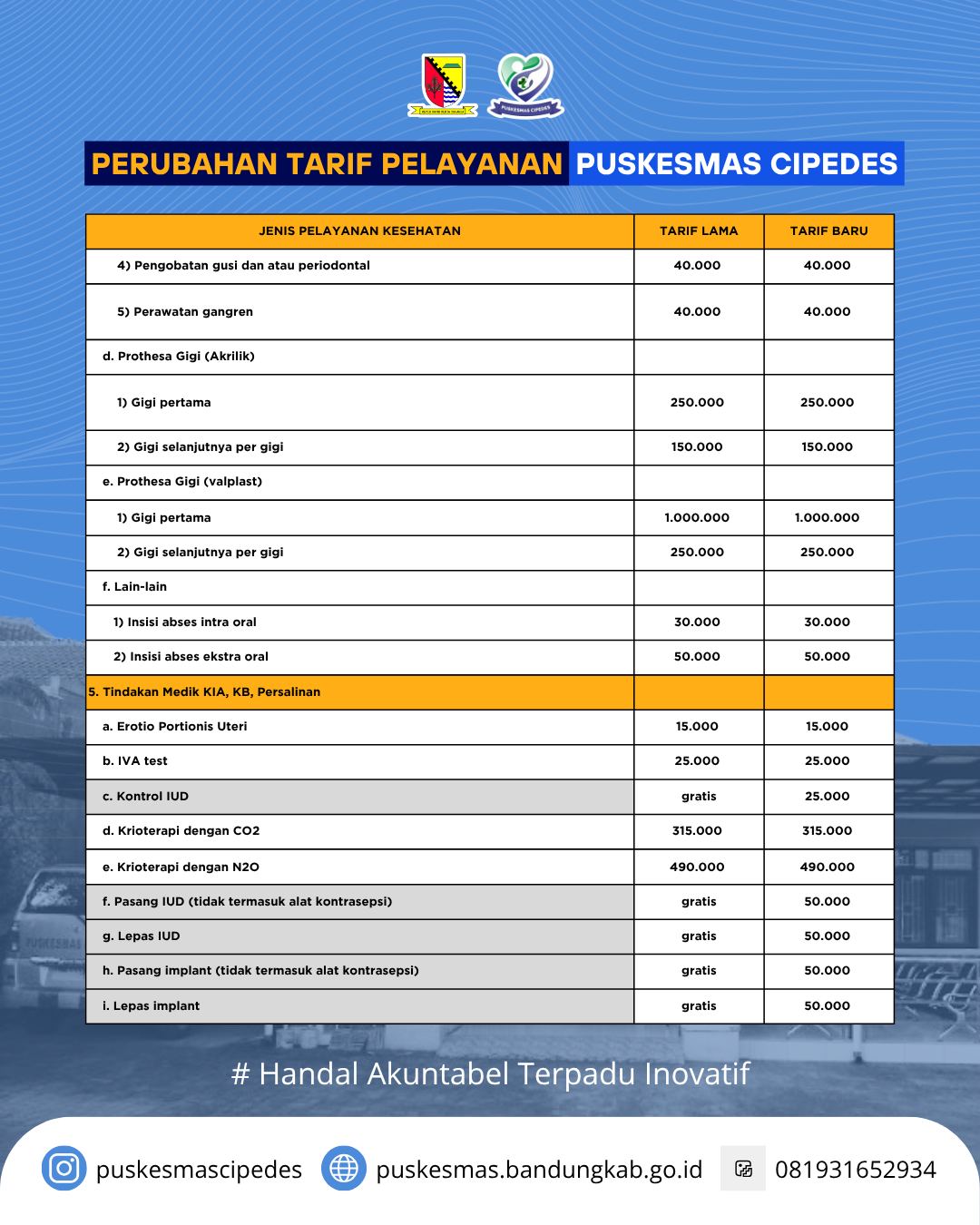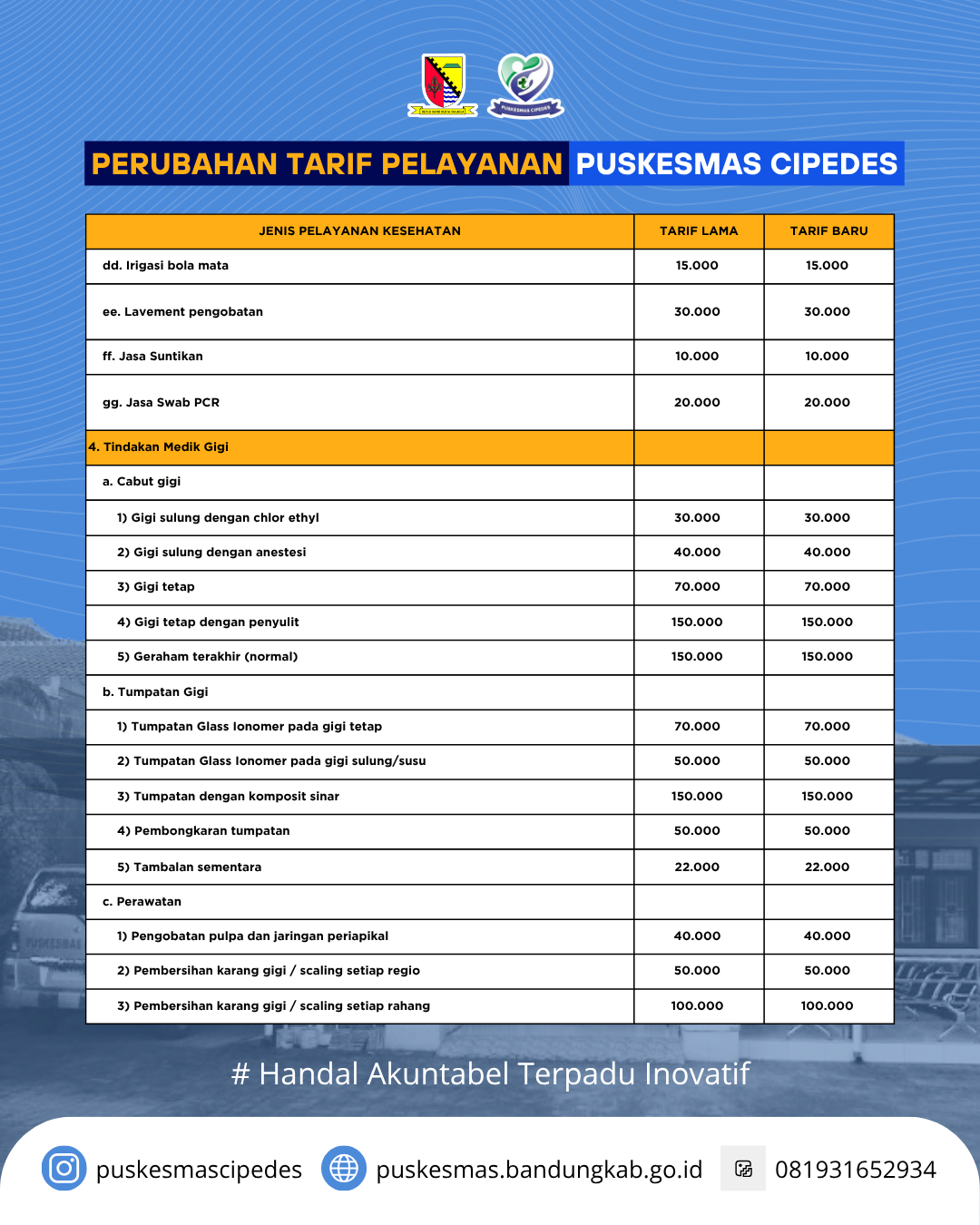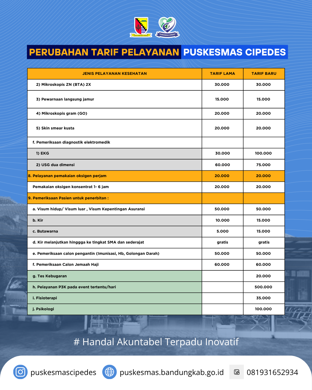 Berikut tarif pelayanan kesehatan di Puskesmas Cipedes 🙏
