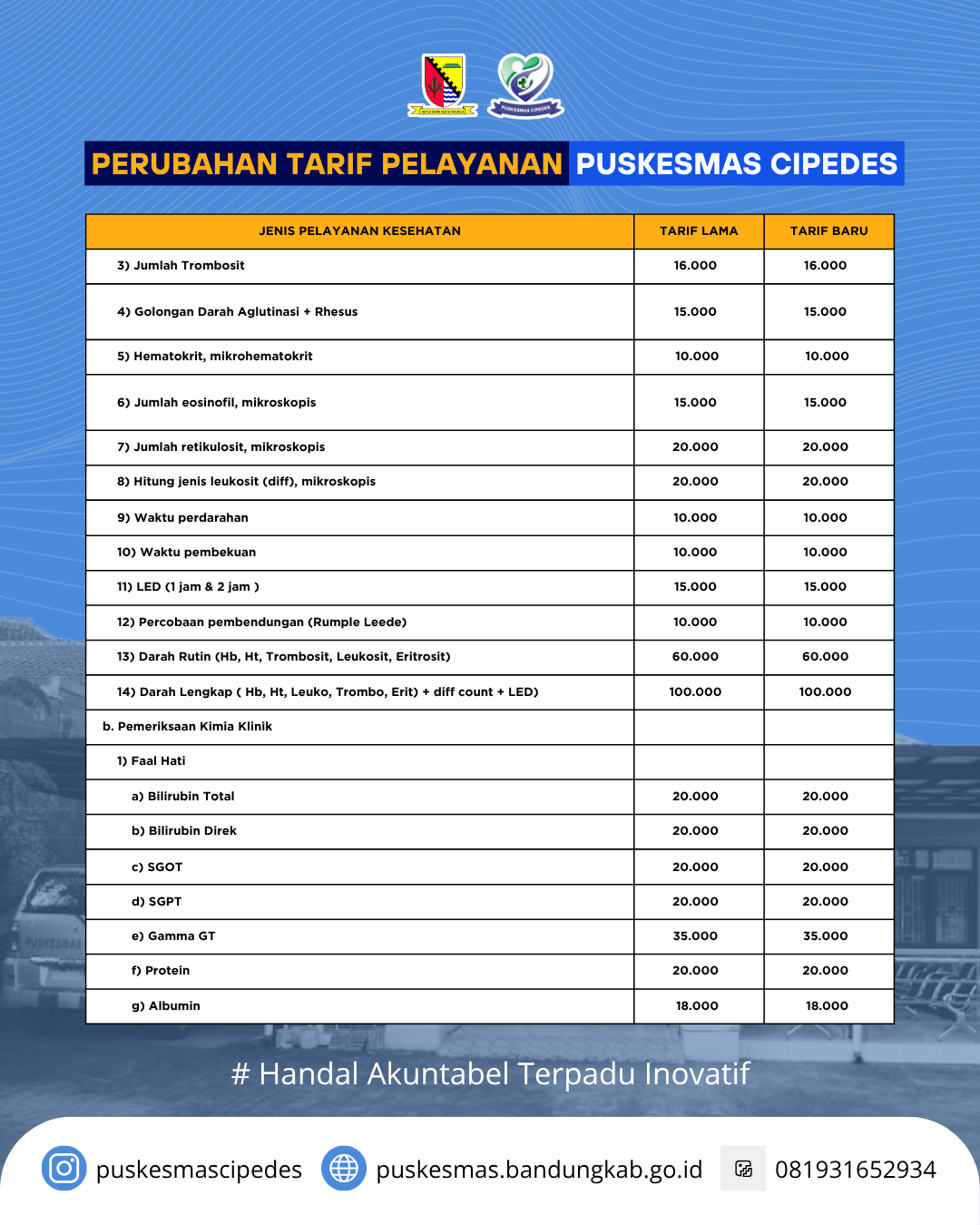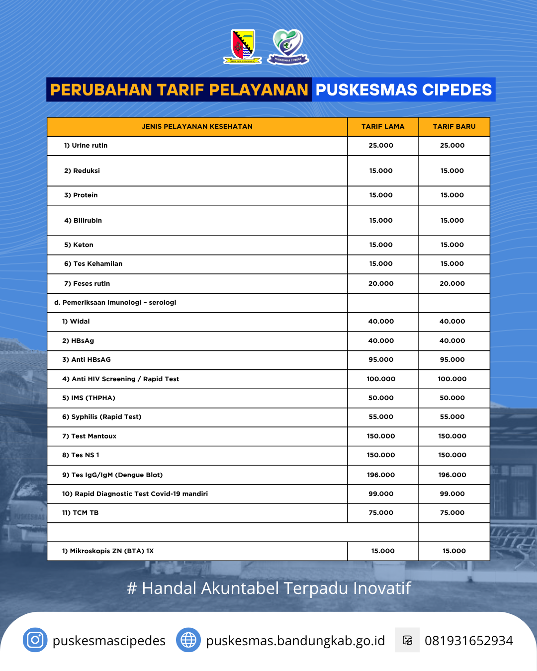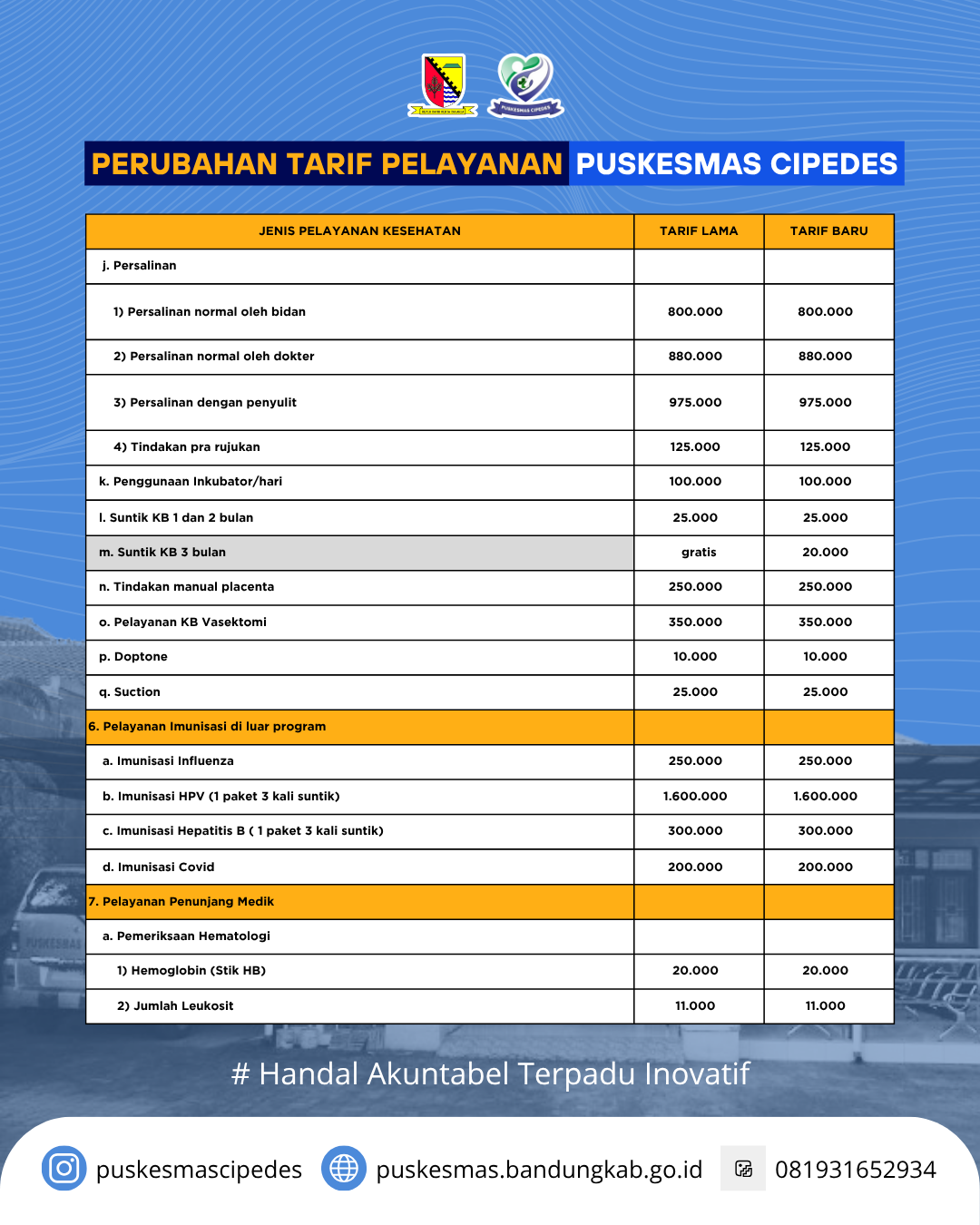 Berikut tarif pelayanan kesehatan di Puskesmas Cipedes 🙏