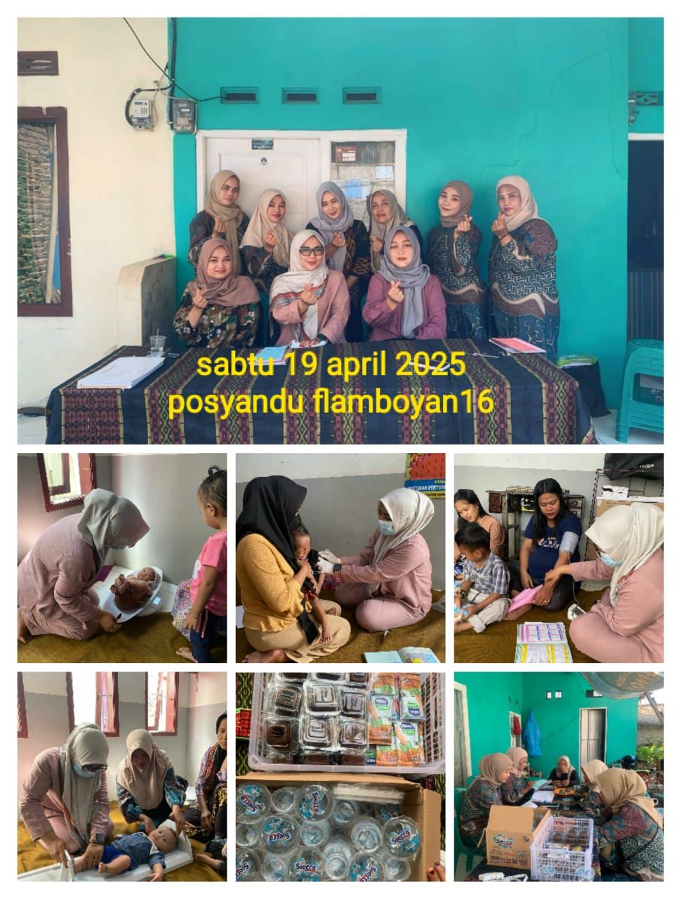 Pelaksanaan Kegiatan Posyandu Pada Hari Sabtu, 19 April 2025 Posyandu dilaksanakan di : 1. Posyandu Edelweis 10 Desa Sindangsari 2. Posyandu Flamboyan 16 Desa Sukamanah 3. Posyandu Mekar Asih 11 Desa Mekarpawitan 4. Posyandu Anugrah 9 Desa Cipaku 5. Posyandu Anugrah 8 Desa Cipaku Layanan yang diberikan meliputi - Penimbangan balita - Imunisasi - Layanan Lansia - Pemeriksaan Kesehatan Ibu Hamil