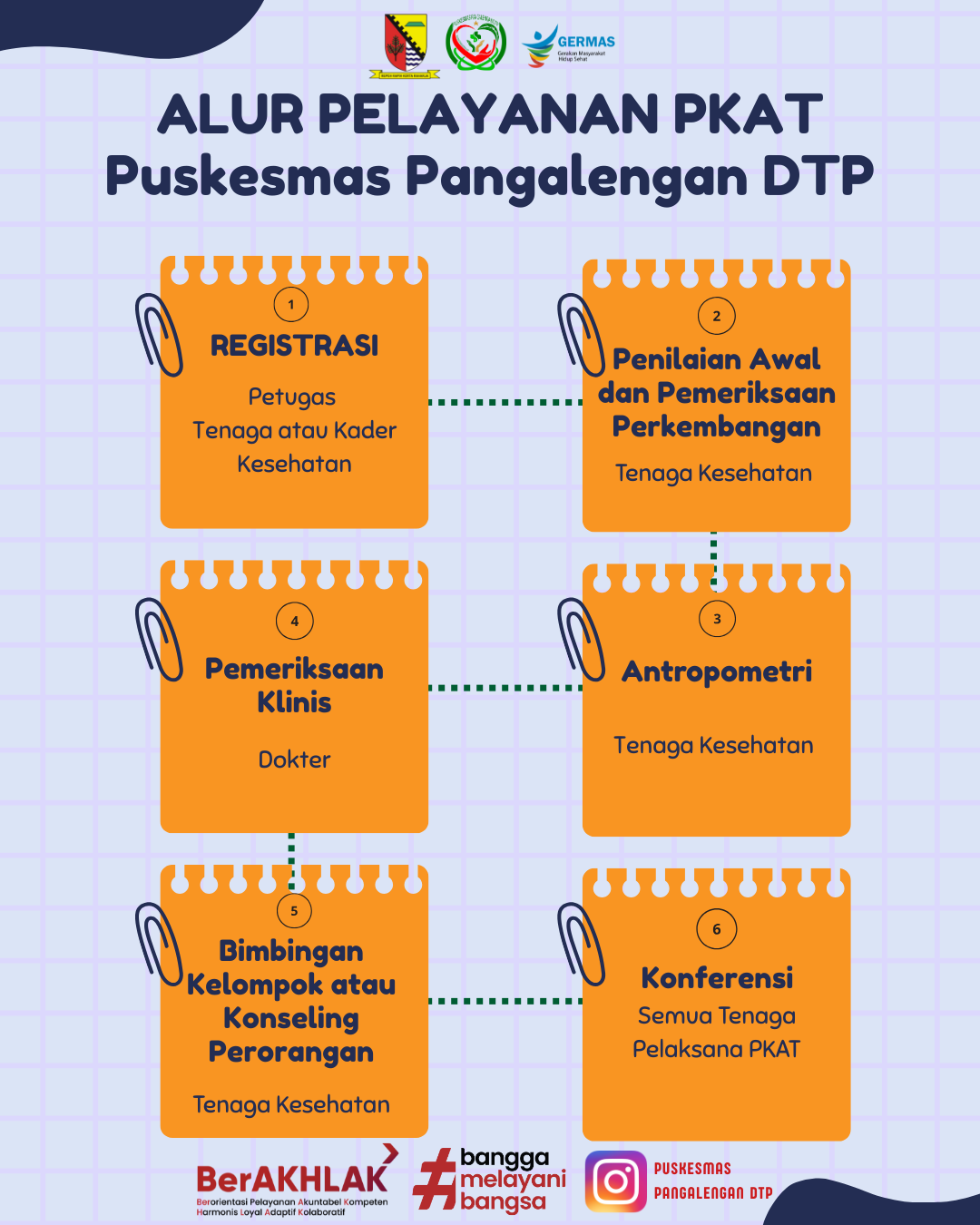 Pemeriksaan Kesehatan Anak Terintegrasi merupakan kegiatan pemeriksaan untuk memastikan tumbuh kembang anak-anak berlangsung dengan baik. Dalam kegiatan ini, dilakukan berbagai pemeriksaan kesehatan seperti pengukuran berat badan, tinggi badan, pemeriksaan mata, gigi, serta evaluasi perkembangan motorik dan kognitif anak. Sasaran PKAT adalah bayi berusia 6 bulan sampai 7 bulan kurang 1 hari. PKAT dilakukan secara rutin untuk memastikan tumbuh kembang anak berjalan dengan baik.
