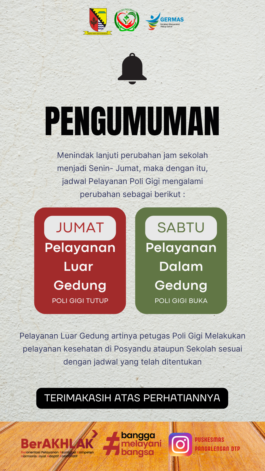 PERUBAHAN JADWAL PELAYANAN POLI GIGI PUSKESMAS PANGALENGAN DTP