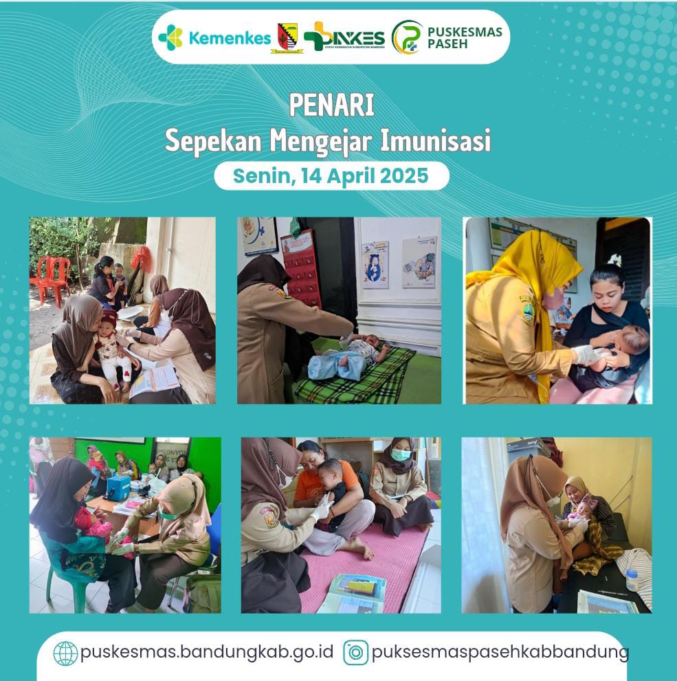 Dalam rangka memperingati Pekan Imunisasi Dunia (PID) Puskesmas Paseh sebagai salah satu fasilitas pelayanan kesehatan yang menyelenggarakan pelayanan imunisasi turut serta mensukseskan pelaksanaan PENARI (Sepekan Mengejar Imunisasi) untuk mendorong masyarakat melakukan imunisasi dan meningkatkan capaian imunisasi di wilayah kerja Puskesmas Paseh.