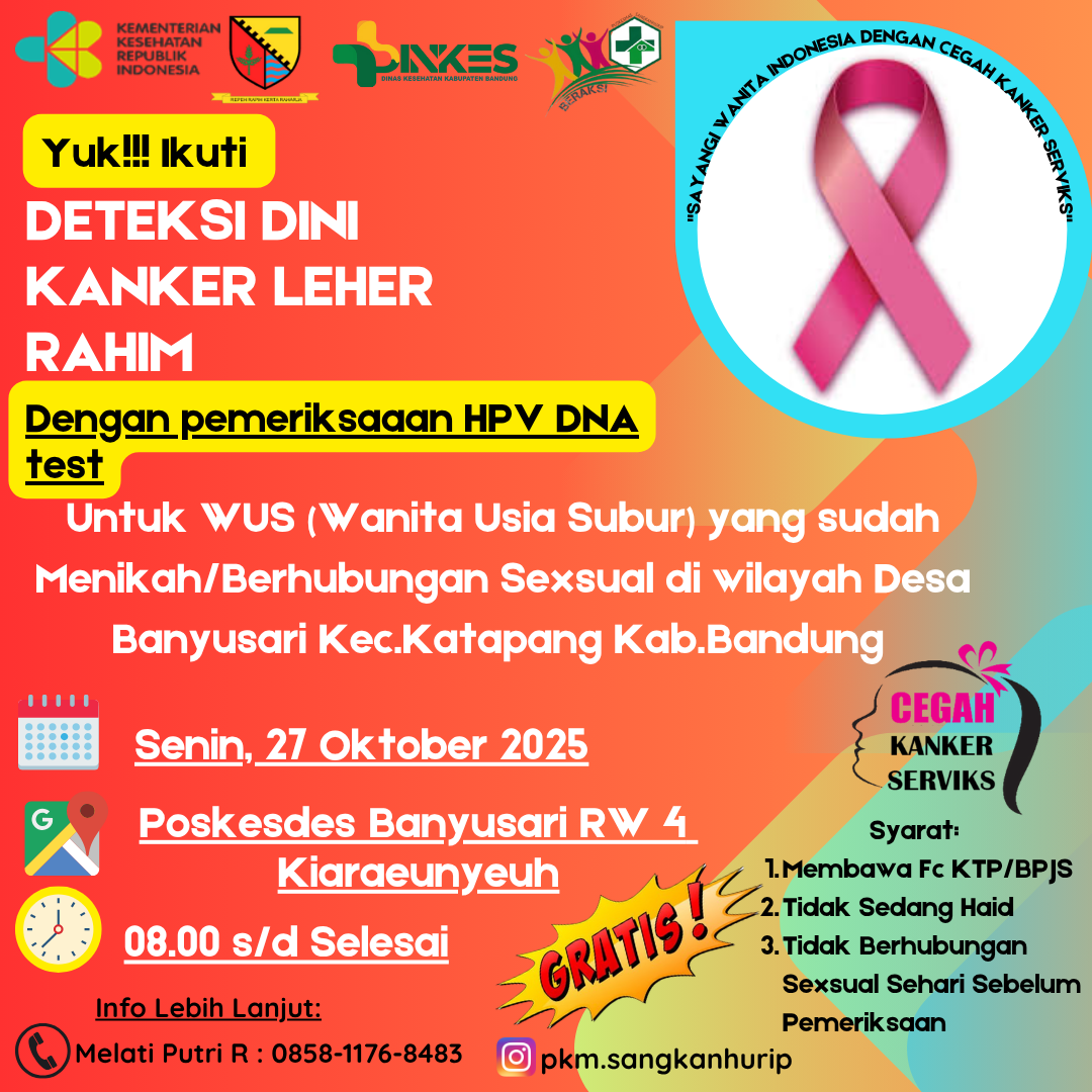 SKRINING KANKER SERVIKS DENGAN PEMERIKSAAN HPV DNA TES DI POSKESDES DESA BANYUSARI Kegiatan Luar Gedung 24 Oct 2025 Read More